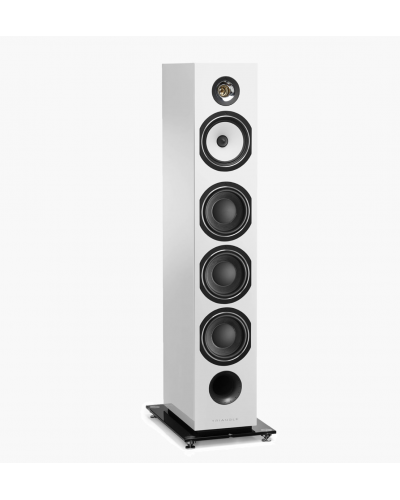 Dieser elegante 1,20 m hohe 3-Wege-Standlautsprecher wurde entworfen, um auch große Räume zu beschallen und einen tiefen, kraftvollen Bass zu liefern. Er hat nicht weniger als sechs Chassis: zwei Hochtöner mit Hornvorsatz, einen 16 cm Mitteltöner aus Naturzellulose und drei Tieftöner der neuesten Generation, um eine breite und äußerst detaillierte Bühnenabbildung zu bieten.